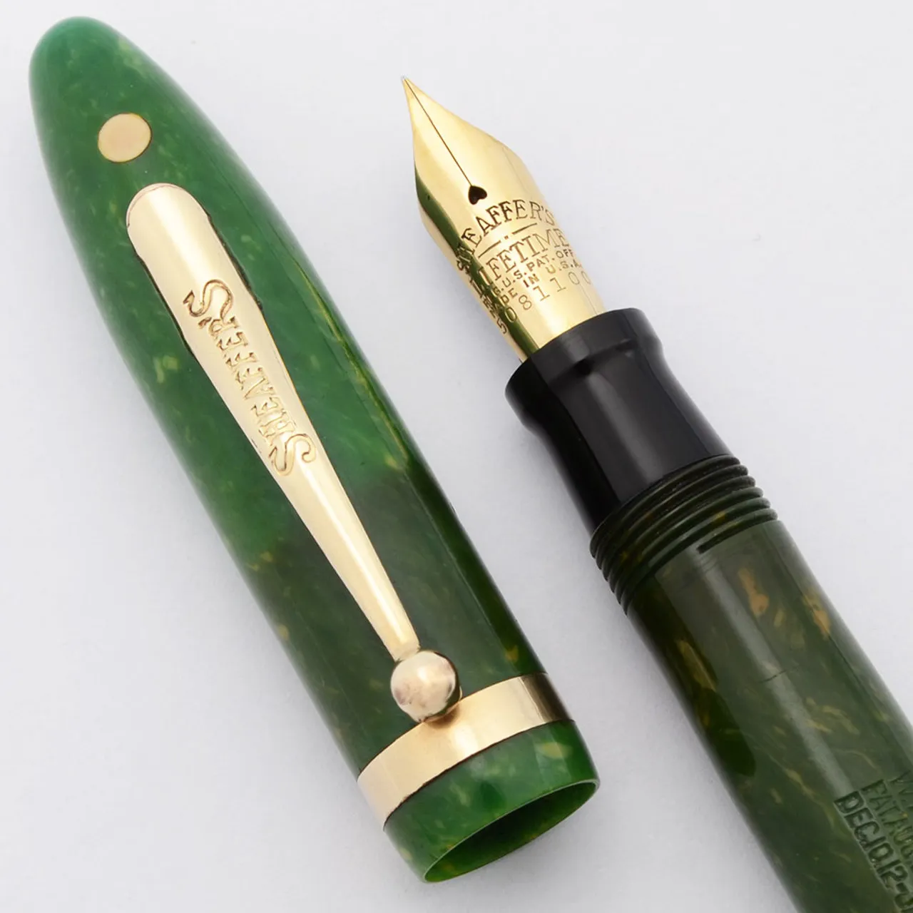 만년필의 세 번째 혁신은 색이었습니다. 이 혁신을 주도한 것은 파커였죠. 파커Parker 는 1922년 최초의 컬러 만년필인 듀오폴드 오렌지Duofold Orange 를 출시하며 큰 인기를 얻습니다. 이를 지켜보던 쉐퍼는 1924년 듀폰의 플라스틱 피록실린Pyroxylin 을 사용하여 최초의 플라스틱 만년필을 출시하죠. 이 만년필은 제이드 그린Jade Green 색을 가지고 있었고요. 파커의 듀오폴드 오렌지를 겨냥해 더 밝고 화려한 컬러로 대응한 것이었죠. 플라스틱이라는 새로운 재질에 사람들은 열광했고, 1923년 250만 달러였던 쉐퍼의 매출액이 1925년 470만 달러까지 늘게 됩니다.