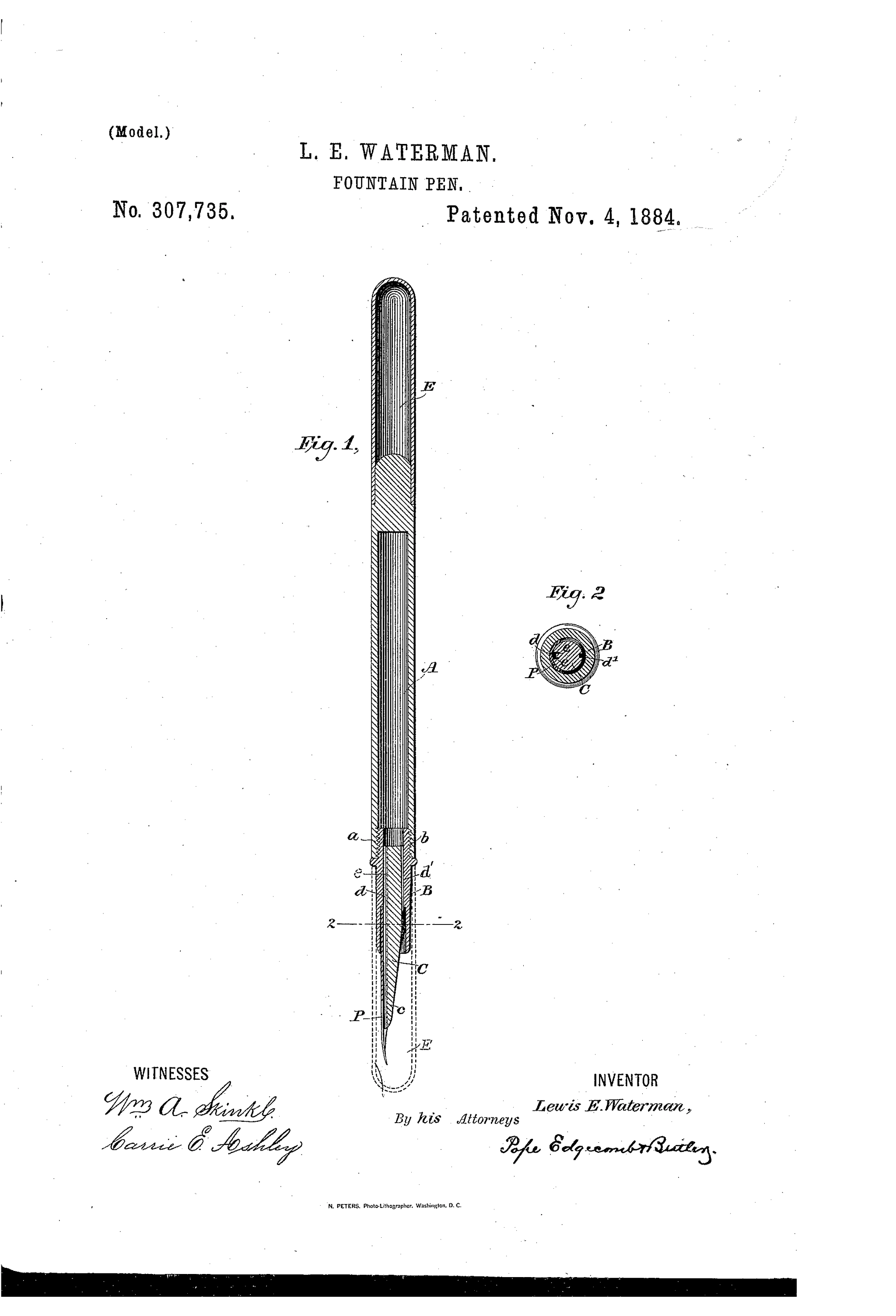 1883년 루이스 워터맨Lewis Edson Waterman 은 새로 설립된 회사의 펜 판매원으로 일합니다. 하지만 일하던 회사가 6개월 만에 부도가 나죠. 일자리를 잃은 워터맨은 아예 부도난 회사를 인수해서 펜을 개발하기 시작합니다.