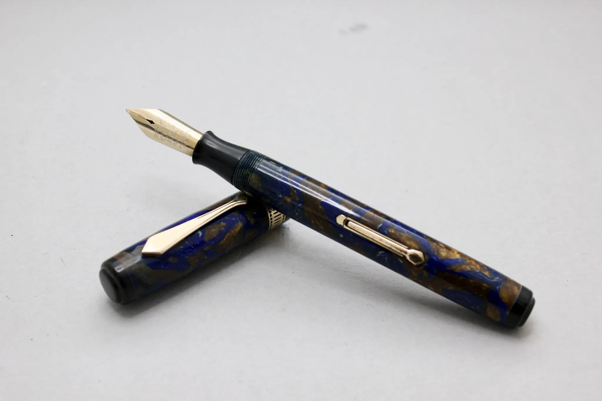 이렇게 파커와 쉐퍼를 필두로 여러 브랜드가 색과 플라스틱 소재를 적극 도입하는 동안 워터맨은 1928년까지도 옛날 재질인 리플 하드 러버를 사용합니다. 여기에는 1922년에 하드 러버 만년필에 필요한 고무 회사를 인수했던 것도 큰 영향을 미쳤죠. 워터맨은 1929년에서야 플라스틱 재질의 퍼트리션Patrician 을 출시합니다.