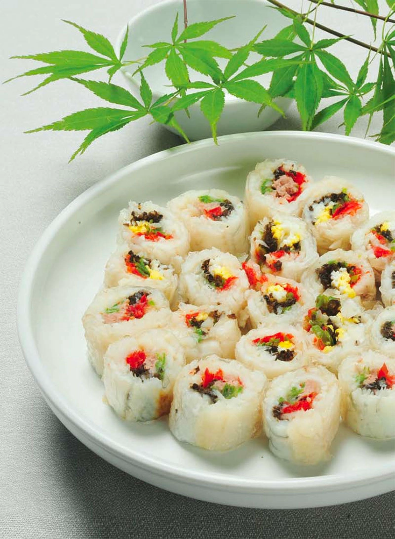 생선숙편은 생선 으깬 것에 녹말·참기름·간장을 넣고 쪄낸 다음 편으로 썰어서 잣가루를 넣은 간장에 찍어 먹었던 것으로 추측되는 음식인데요. 국가에 경사가 있을 때 베푸는 연회를 기록한 『진연의궤』에 등장합니다. 그 중에서도 가장 오래된 1719년 숙종 때의 『진연의궤』에 등장하죠. 1902년 『진연의궤』에는 생선숙편에 달걀, 표고, 목이 등을 얇게 썰어 함께 내는 생선문주가 등장합니다.