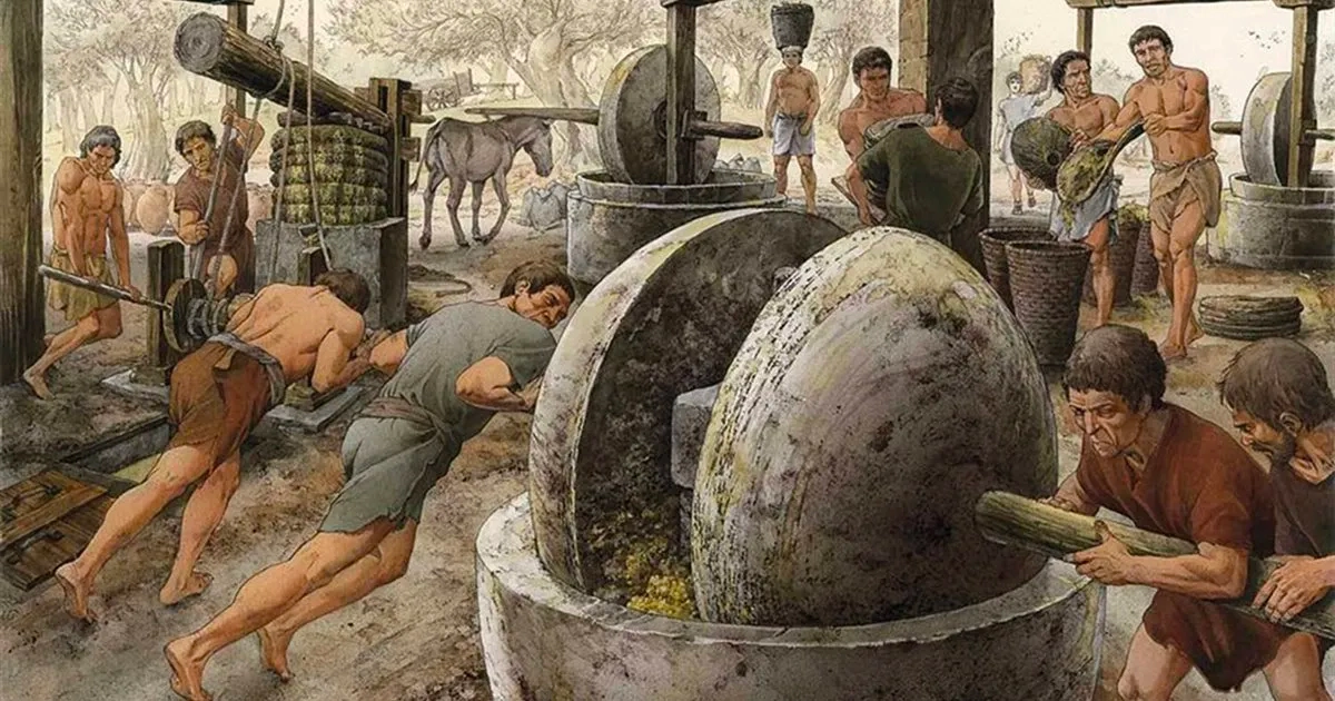 Figure.1 로마 시대 올리브를 압착시켜 오일을 얻어내는 모습 ⓒstoricang.it