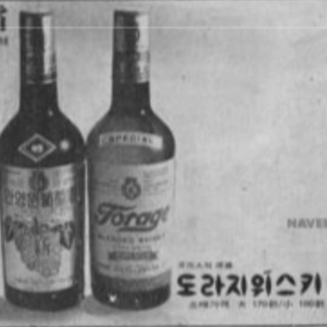 1960년 부산의 <국제신보>에서 도리스 위스키는 일본 산토리의 토리스 위스키 이름을 따서 만든 것으로 불법 상품 도용이라는 기사가 실렸죠. 이에 도리스 위스키 사장은 상표 위조 혐의로 구속되었습니다. 하지만 구속에서 풀려난 직후 ‘도라지 위스키’라 이름을 바꾸고 버젓이 판매를 이어갔죠.