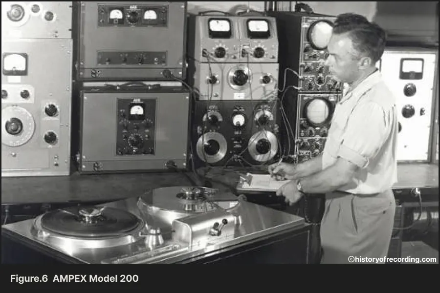 1945년 7월, 독일이 항복한 지 두 달 후, 미국 육군 통신단의 존 멀린John Mullin 은 프랑크푸르트 외곽의 한 라디오 방송국에서 독일제 마그네토폰을 발견합니다. 독일의 통신 기술에 매료된 멀린은 마그네토폰을 개량해 1946년 샌프란시스코에서 열린 IEEE 회의에서 선보입니다. 이후 멀린은 Ampex Co., Ltd.와 협업하여 1948년 Ampex 200 모델을 완성하죠.