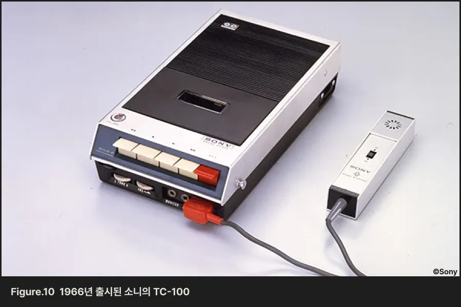 1966년 소니에서 첫 번째 콤팩트 카세트 테이프 레코더 TC-100를 출시했었는데요. 말이 콤팩트지 휴대가 간신히 가능한 카세트 테이프 레코더였죠. 2년 후에 출시된 TC-50부터를 진정한 콤팩트 카세트 테이프 레코더라 부를 수 있었습니다. 이후 출시된 워크맨과 사이즈도 큰 차이가 없었고, 무엇보다 아폴로 10호 우주선 승무원들이 사용하면서 큰 주목을 받았습니다.