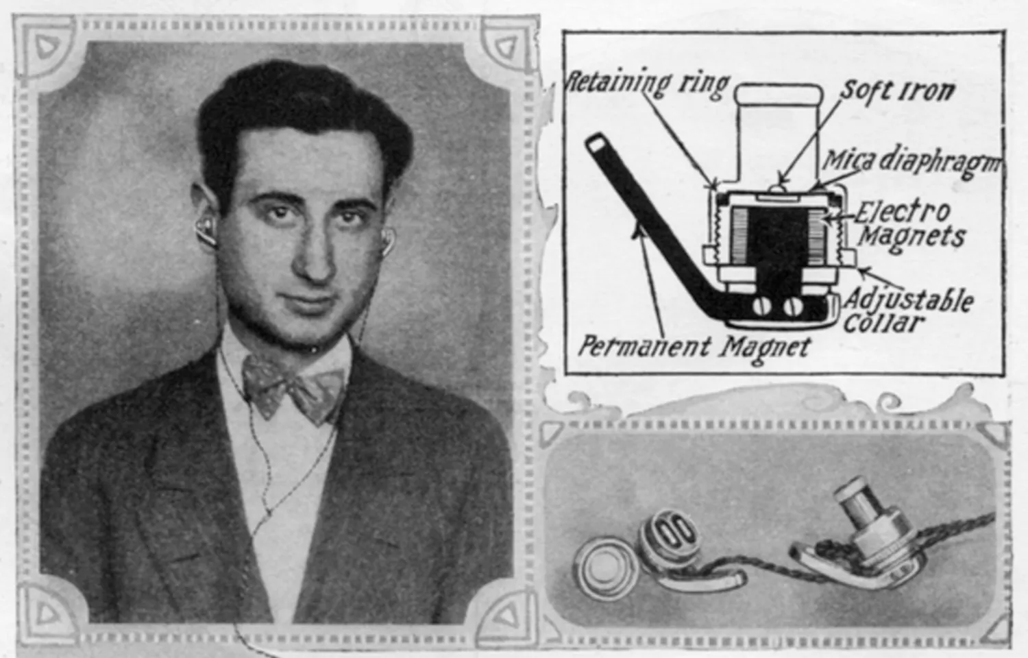 제대로 머리에 쓸 수 있는 헤드폰은 1910년 미국에서 탄생합니다. 이 헤드폰은 무선 수신기였기 때문에 라디오 헤드셋이라고 불렸는데 오늘날의 헤드폰과 모습이 완전히 같죠.