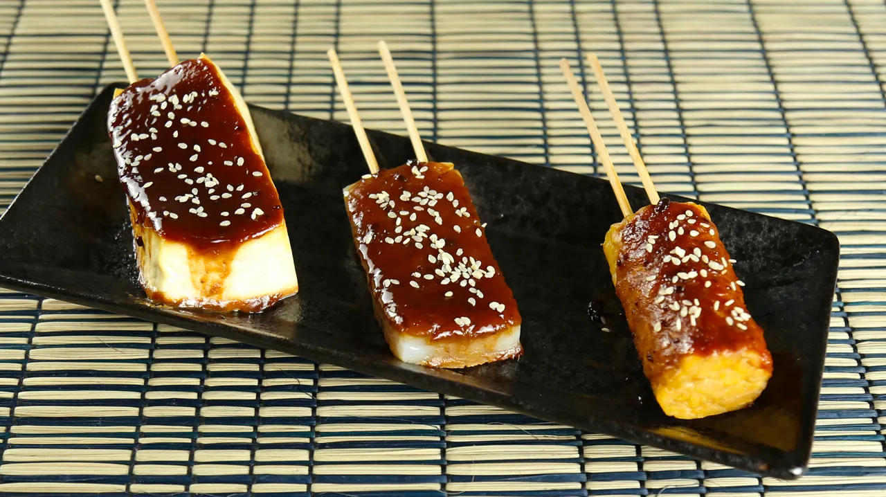 참고로 오뎅과 어묵은 원래 다른 음식이었습니다. 어묵은 생선 살을 으깨 뭉쳐 만든 가마보코를 지칭하는 것이었고요. 오뎅은 두부를 꼬치에 끼워 구워 먹던 덴가쿠田樂 에서 유래한 음식이었죠. 18세기에는 덴가쿠에 국물을 붓고 무, 곤약 등을 함께 넣어 먹는 요리가 등장했는데요. 이것이 바로 오뎅의 시초이죠. 여기에 어묵(가마보코)를 넣으면 오늘날 우리가 아는 오뎅탕이 되기 때문에 사람들이 오늘날 어묵과 오뎅은 혼동해서 사용되고 있는 것이죠.