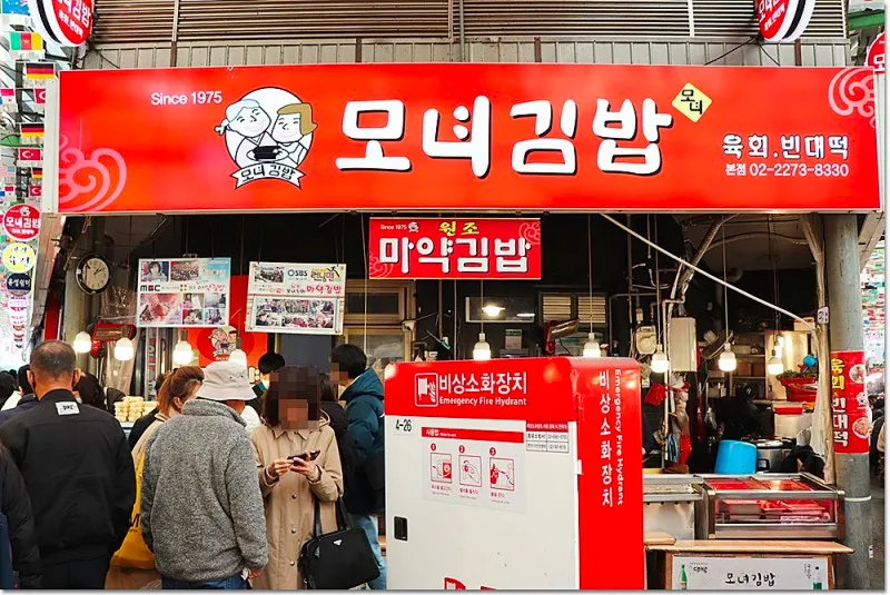 원조 마약김밥집으로 알려진 곳은 광장시장에 있는 모녀 김밥입니다. 1975년 이상훈 씨가 당시 집에서 만든 꼬마김밥을 커다란 소쿠리에 담아 와 동대문시장 상인들을 상대로 행상을 한 게 시작이죠. 김밥 판 돈을 모아 지금의 노점 자리를 사면서 광장시장에 터를 잡았습니다. 원래는 상호명도 없이 장사했지만 방송에 소개된 이후 찾아오는 손님이 늘자 2008년 모녀김밥이라는 간판을 달기 시작했죠.