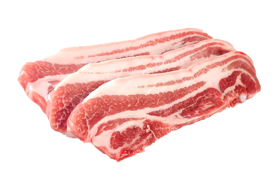 돼지의 갈비에 붙어 있는 살. 비계와 살이 세 겹으로 되어 있는 것처럼 보이는 고기이다.≒세겹살