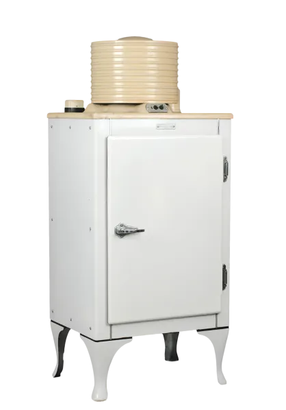 최초의 가정용 냉장고는 프랑스의 수도사 아베 마르셀 오디프렌Abbé Marcel Audiffren이 발명합니다. 와인을 차갑게 보관하기 위한 설비였죠. 이러한 오디프렌의 특허를 제너럴 일렉트릭 사에서 구매해 1911년 전기냉장고를 생산합니다. 하지만 당시 자동차 2대 값에 이르는 비싼 가격 탓에 잘 팔리지 않았죠.