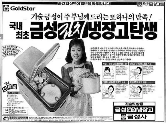 아파트의 보급과 냉장고의 상관관계를 가장 잘 보여주는 것이 바로 김치냉장고이죠. 최초의 김치냉장고는 1984년 등장한 금성사의 GR-063인데요. 당시에는 집 마당에 김장독을 쓰는 집이 많았기 때문에 성공하지 못했죠.