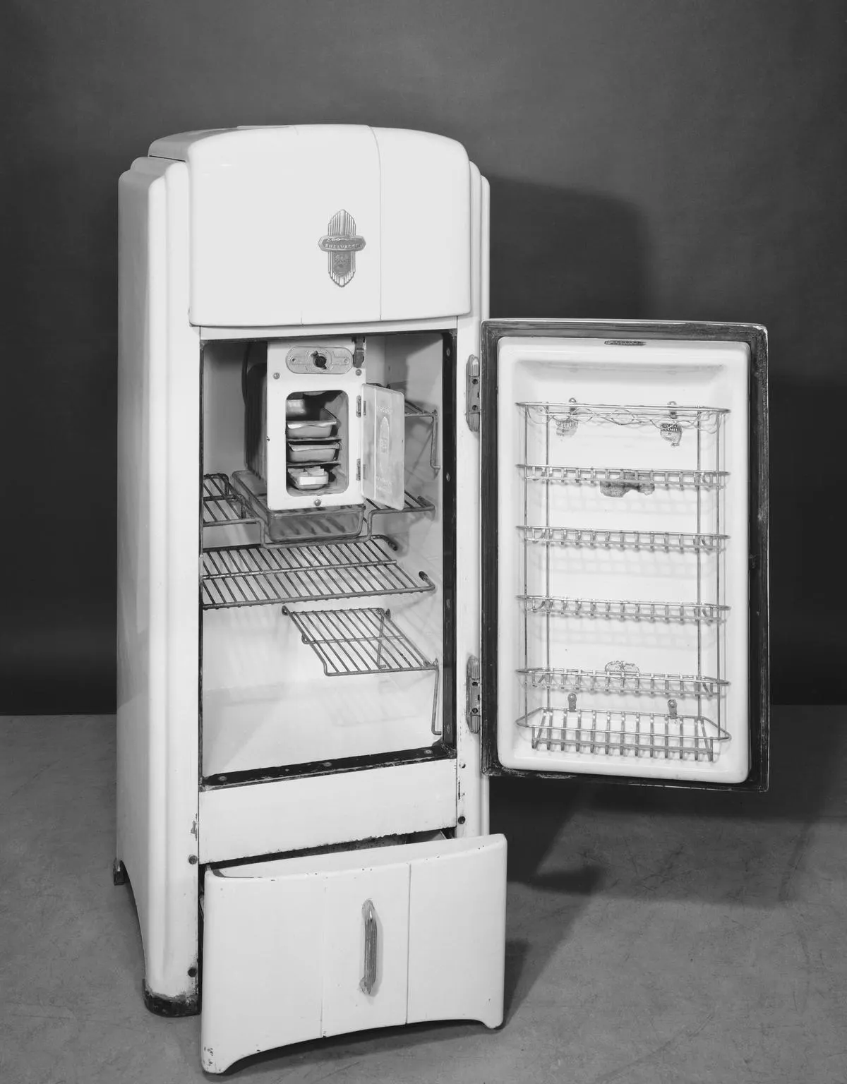 1950년대 프리지데어는 얼음 틀에서 자동으로 각 얼음을 떼어내는 얼음 배출기를 내장한 냉장고를 선보였고, 1960년에 출시된 필코 냉장고는 스위치 조작으로 냉동실과 냉장실을 변환할 수 있는 제품을 출시하지만 모두 그렇게 성공하지는 못했죠.