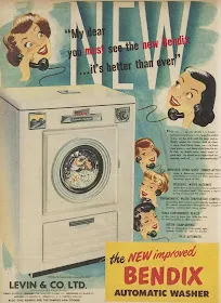반면, 1936년 등장한 자동 세탁기는 빨랫감을 세탁기에 넣고, 다이얼만 맞추면 탈수까지 완료되는 혁신적인 기계였습니다. 실제로 벤딕스Bendix 에서 자동 세탁기를 처음으로 시장에 선보였을 때 빨래를 돌려 놓고 영화를 보고 와도 된다는 식으로 홍보했죠. 게다가 이 세탁기는 윗부분이 아닌 전면에 뚜껑을 달았습니다. 오늘날 드럼 세탁기의 조상이라고 볼 수 있어요.