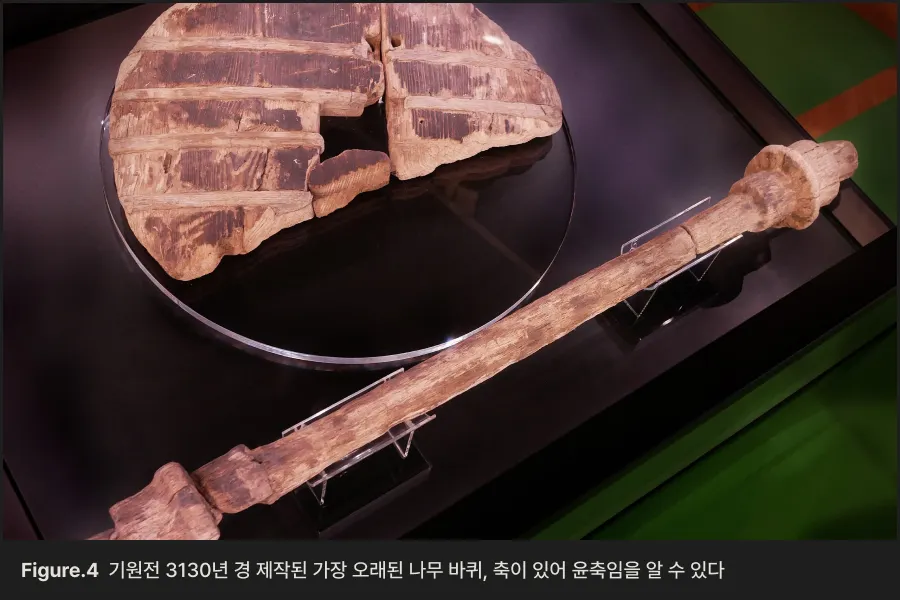 바퀴에 대한 가장 오래된 유물은 기원전 약 4000년 전의 황소 모양 장난감입니다. 그리고 얼마 지나지 않아, 카르파티아 산맥 주변에서 약 150여 점의 사륜차 점토 모형이 출토되죠. 이 유물을 기반으로, 바퀴가 동유럽의 카르파티아 산맥에 있는 구리 광산에서 사용하기 위해 발명되었을 것으로 추측됩니다. 당시 바퀴는 차축 양쪽에 바퀴가 고정된 윤축이었습니다.