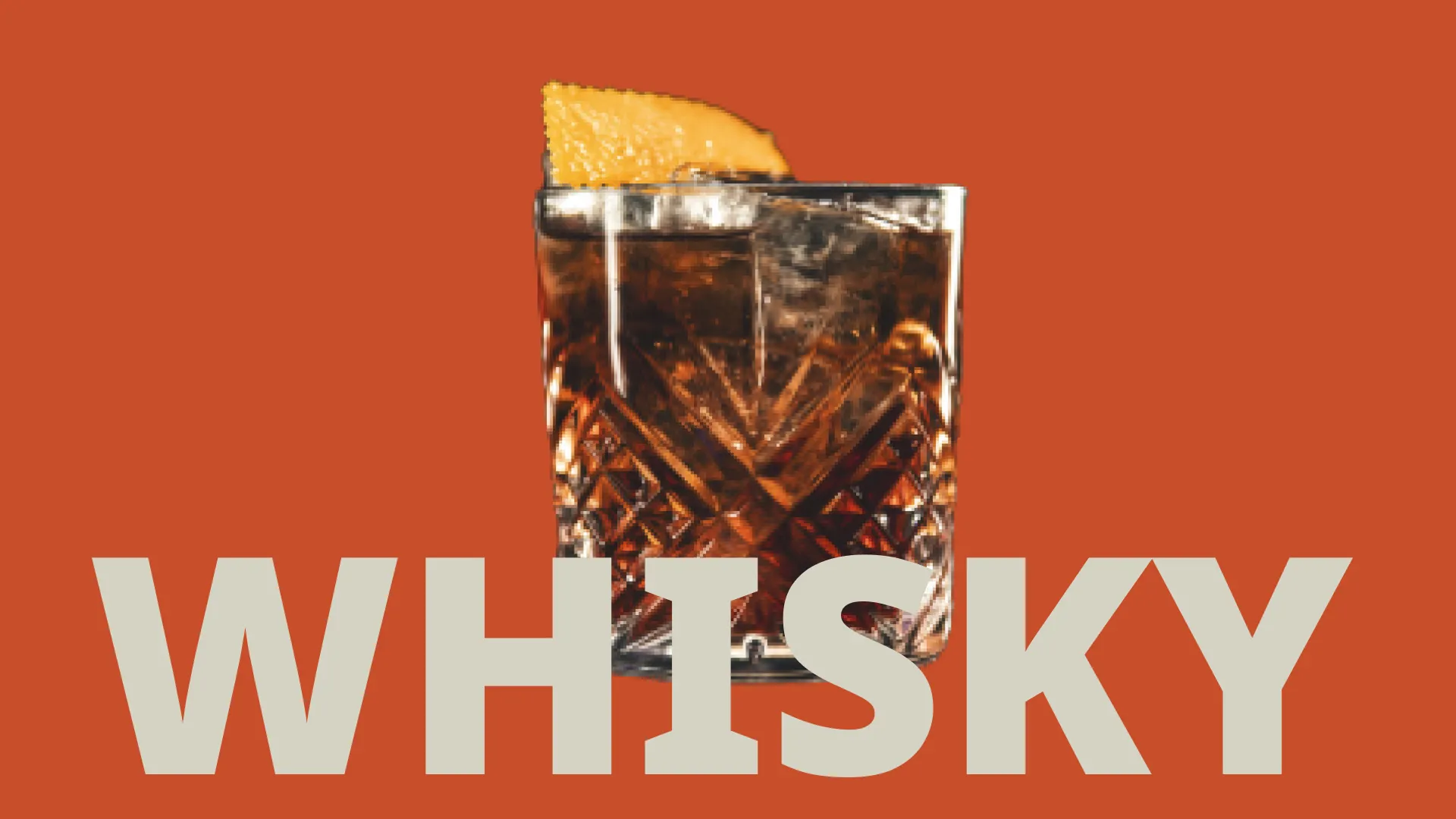 보리, 밀, 수수 따위의 맥아에 효모를 넣어 발효시킨 후 이를 증류하여 만든 술. 알코올 함유량은 41~61%이며 영국산 스카치위스키가 세계적으로 유명하다.